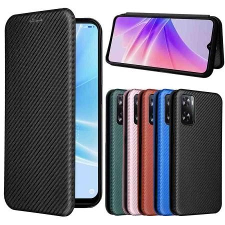 オッポ A77 5G 手帳型ケース カーボン 炭素繊維カバー TPU OPPO A77 5G 保護バンパー 財布型 マグネット カード収納 落下防止